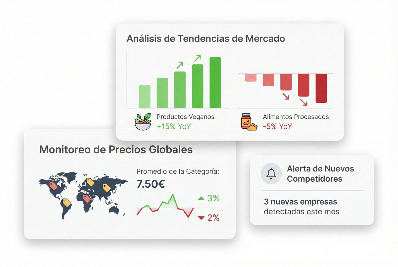 El servicio consiste en una suscripción a una plataforma de datos intuitiva, con funcionalidades personalizadas según el caso de uso contratado. En la plataforma se visualizan analíticas sobre información sectorial (pricing, tendencias, surtido, etc.). El proveedor adapta la experiencia a cómo la organización consume los datos y automatiza informes para su envío por email en el formato requerido (Excel, Power BI o vía API a la BBDD de la organización). Además, el servicio incluye un gestor de cuenta cercano para acompañar la adopción y la evolución.